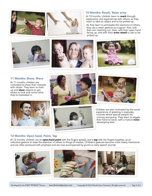 I really love this article from the First Words Project. It’s a fantastic summary of how children’s early gestures develop. For more you can check out their website here.